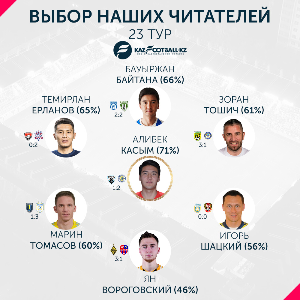 Читатели KazFootball.kz выбрали лучших игроков 23-го тура Премьер-лиги
