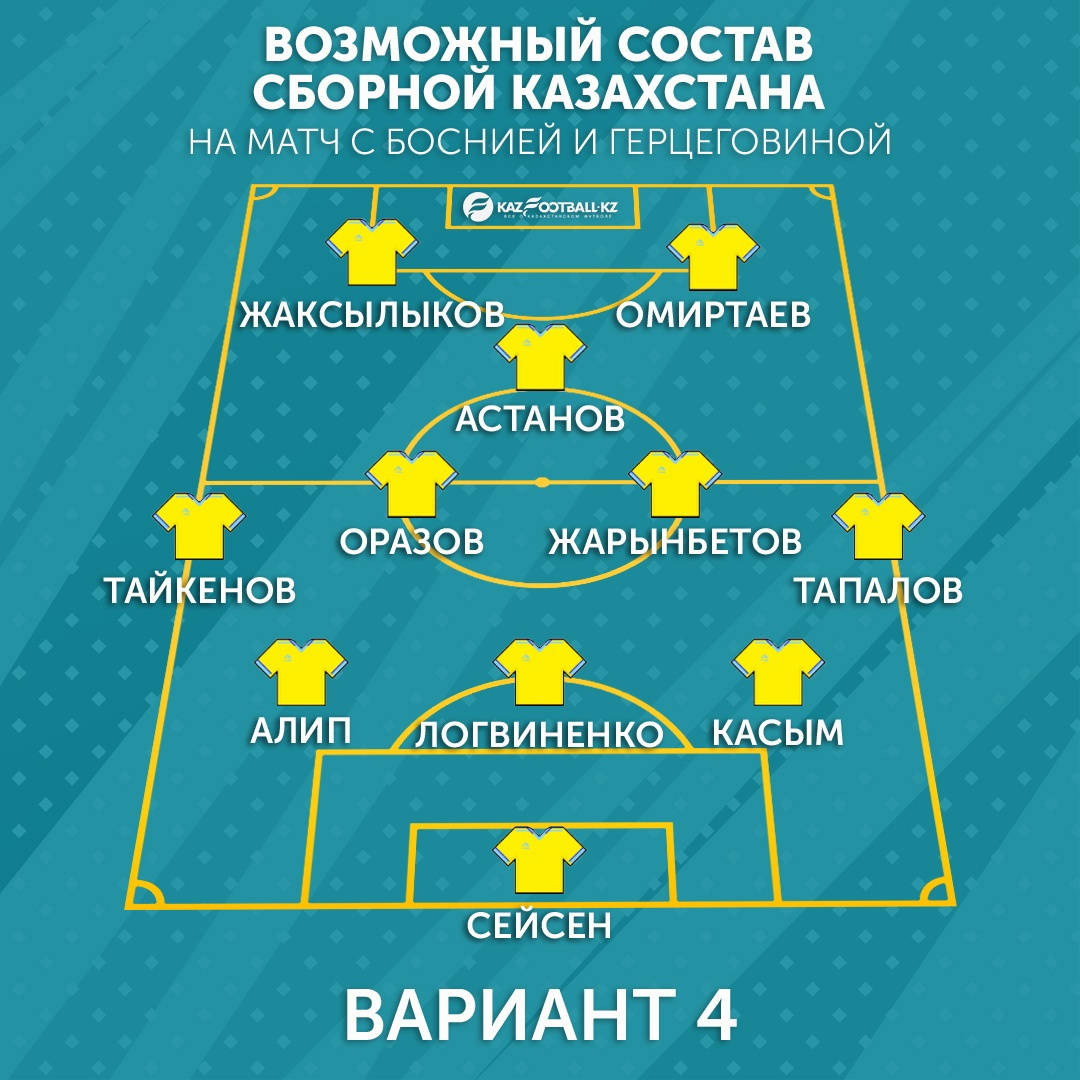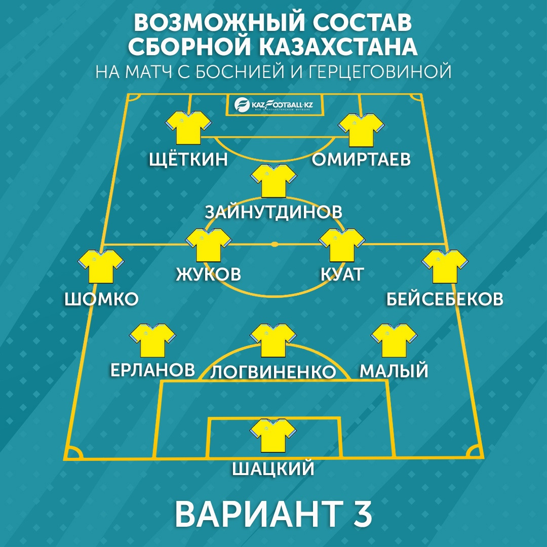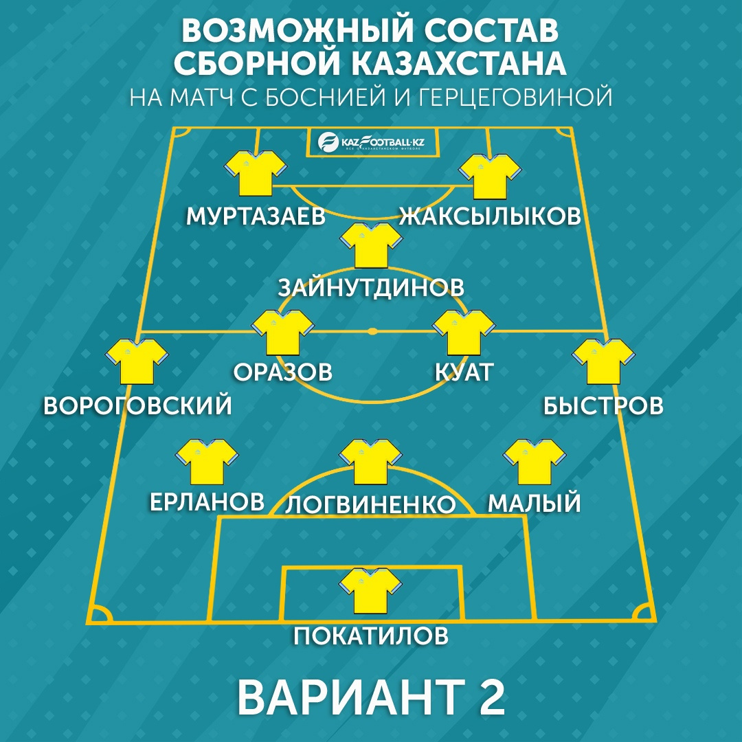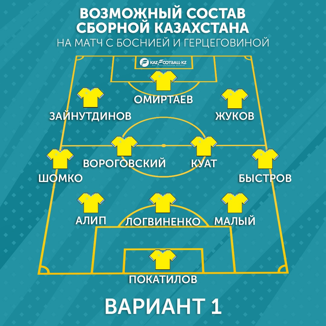 Возможные варианты стартового состава Национальной сборной Казахстана на матч с Боснией и Герцеговиной
