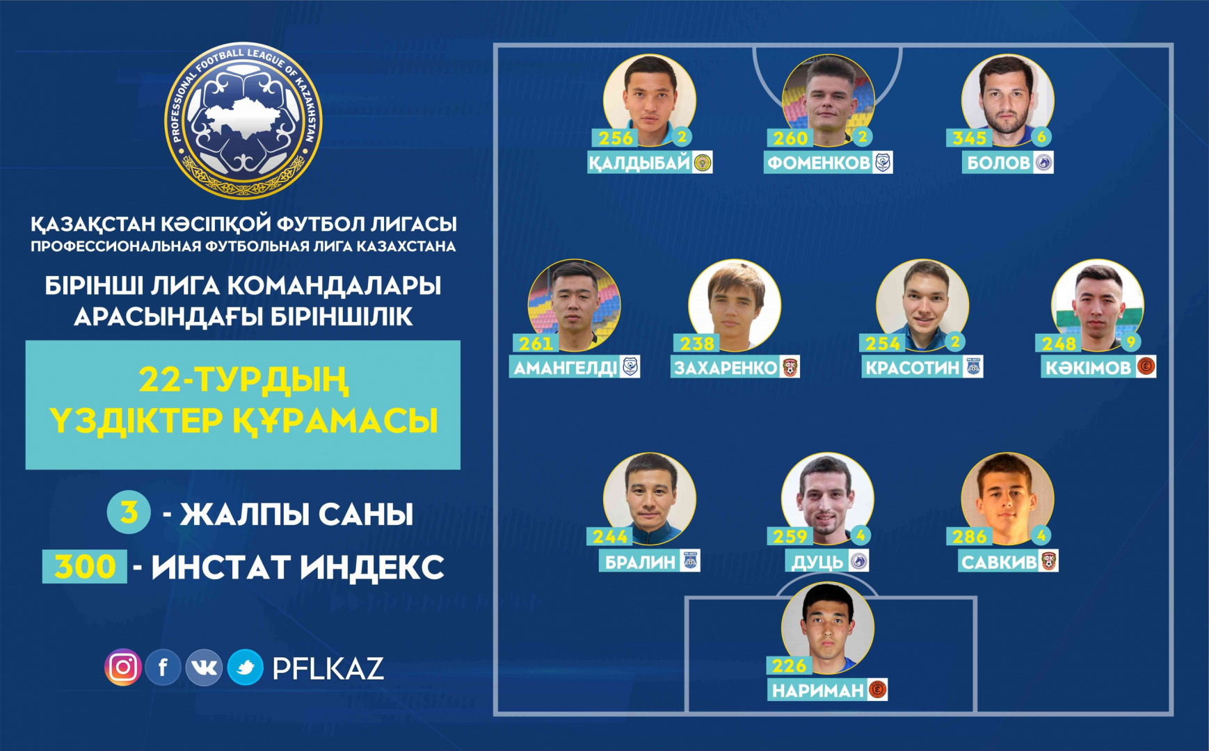 Жансерик Калдыбай к концу сезона начал активно поражать ворота соперника, забив за последние две игры 4 гола. В последнем туре Калдыбай дублем в ворота «Академии Онтустик». Индекс действий – 260.