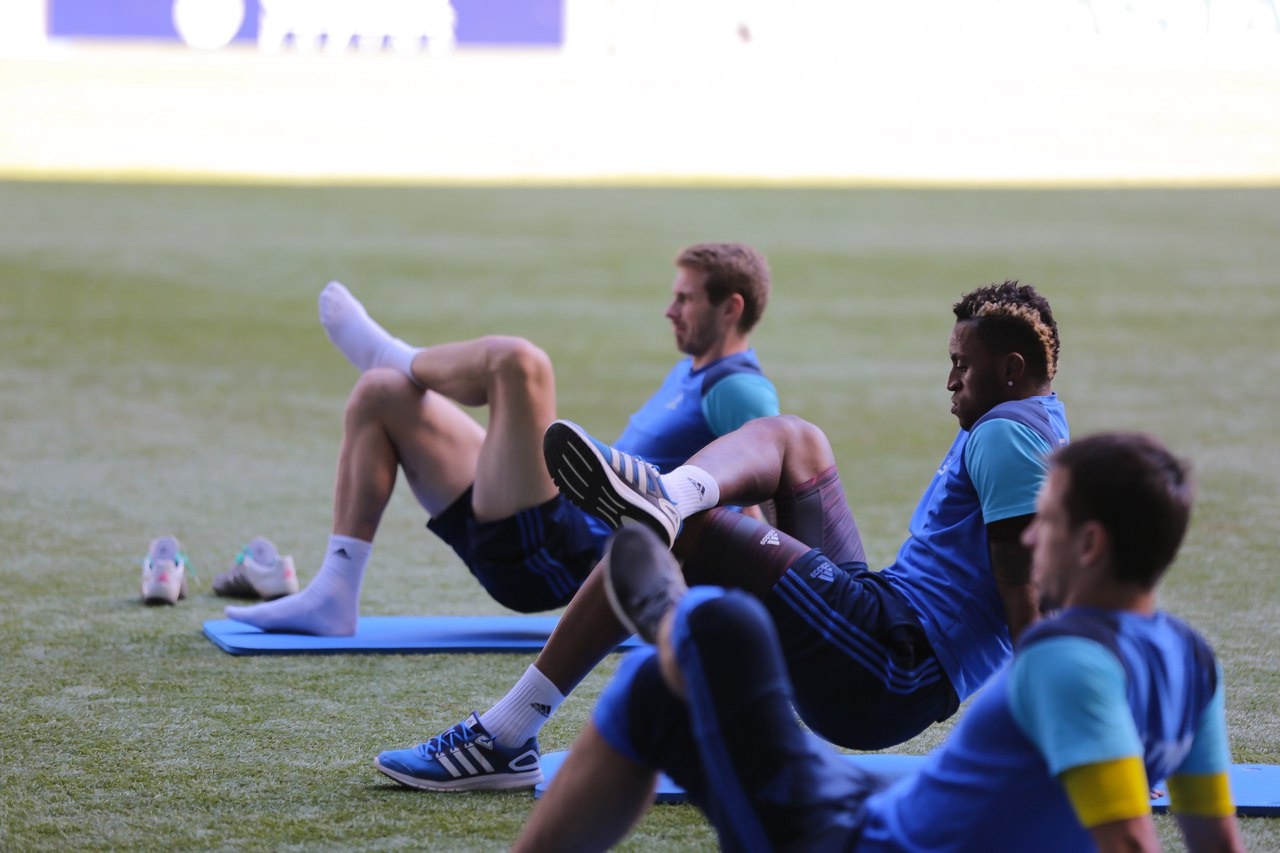 "Астана" вернулась домой и сразу с аэропорта отправилась на тренировку", - сообщает пресс-служба футбольного клуба.