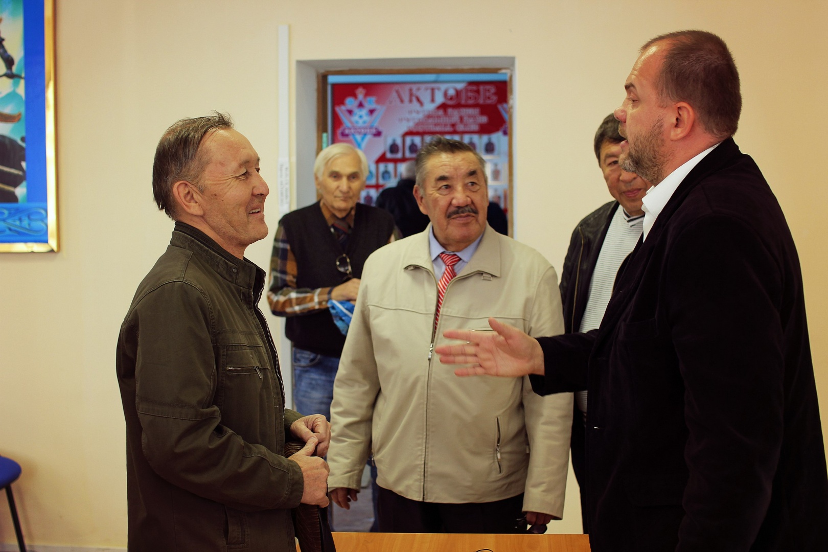Стоит сказать, что визит был не запланированный. Генеральный директор Дмитрий Васильев сразу отложил все дела в сторону и принял почетных гостей в пресс-центре ФК "Актобе". Ветеранов актюбинского футбола не на шутку беспокоит всё, что связано с футбольным клубом. Больше часа в зале обсуждалась игра красно-белых. Ветераны отметили, что всё налаживается и смотреть на такую игру сейчас уже приятно. Ветеранам отрадно, что сейчас играет так много местной молодёжи. Отдельно остановились на вопросе судейства. Ветераны выразили своё недовольство некачественным судейством в матчах актюбинского клуба. Также ветераны обеспокоены негативной информационной средой, которую создают, в том числе, и местные СМИ, такие большие газеты города, как "Диапазон". Почетными футболистами было сделано несколько конструктивных замечаний и предложений по организации футбольных матчей и около-футбольных мероприятий в городе.