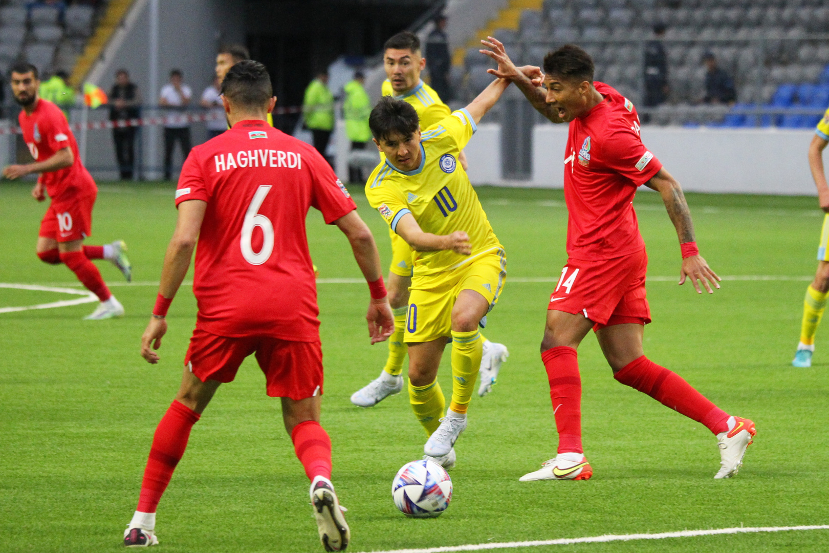 Как и хозяева, Казахстан одержал победу со счетом 2:0 над Азербайджаном в первом матче Лиги Наций. Они не проигрывают в последних четырех играх во всех соревнованиях, одержав три победы и один раз сыграв вничью после унизительного поражения от Франции со счетом 8:0 в ноябре 2021 года. Казахстану удалось одержать только одну победу в девяти выездных играх, проиграв пять и трижды сыграв вничью