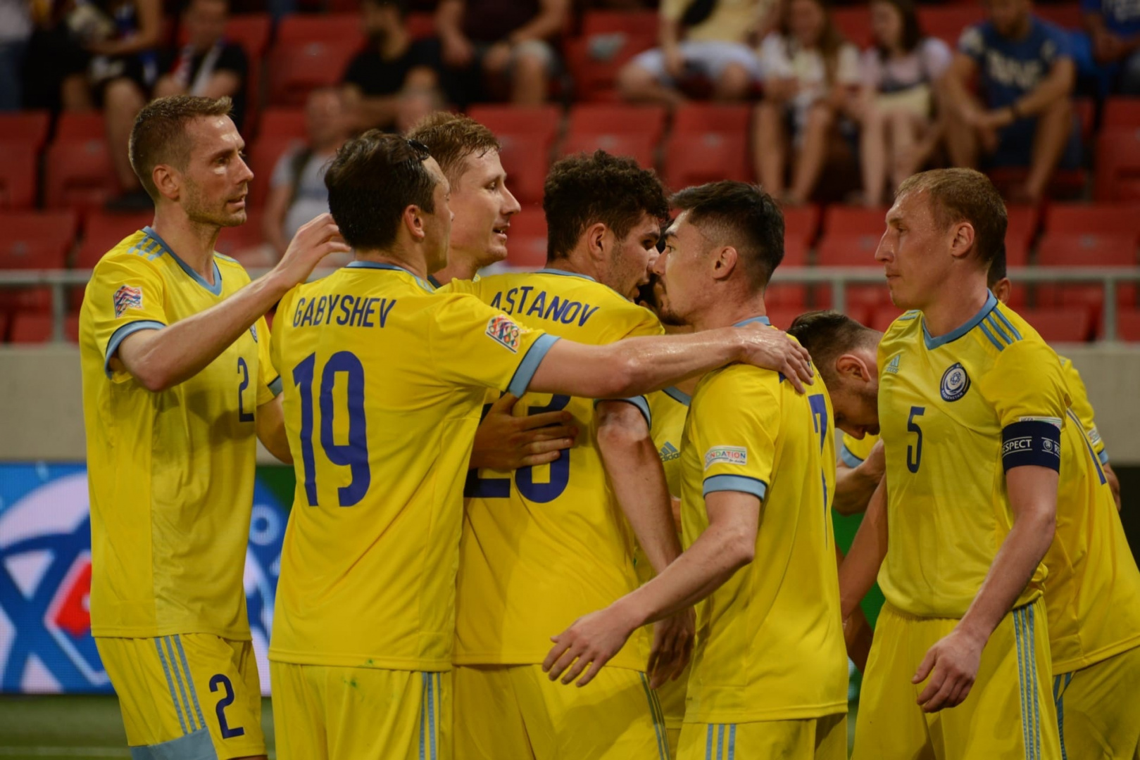 Казахстан: Игорь Шацкий (В) – Тимур Досмагамбетов, Нуралы Алип, Сергей Малый, Александр Марочкин, Михаил Габышев (Багдат Каиров 65) – Исламбек Куат (К), Аслан Дарабаев (Самат Жарынбетов 73), Эльхан Астанов (Владислав Васильев 73), Рамазан Оразов (Ян Вороговский 59) – Абат Аймбетов (Артур Шушеначев 65);