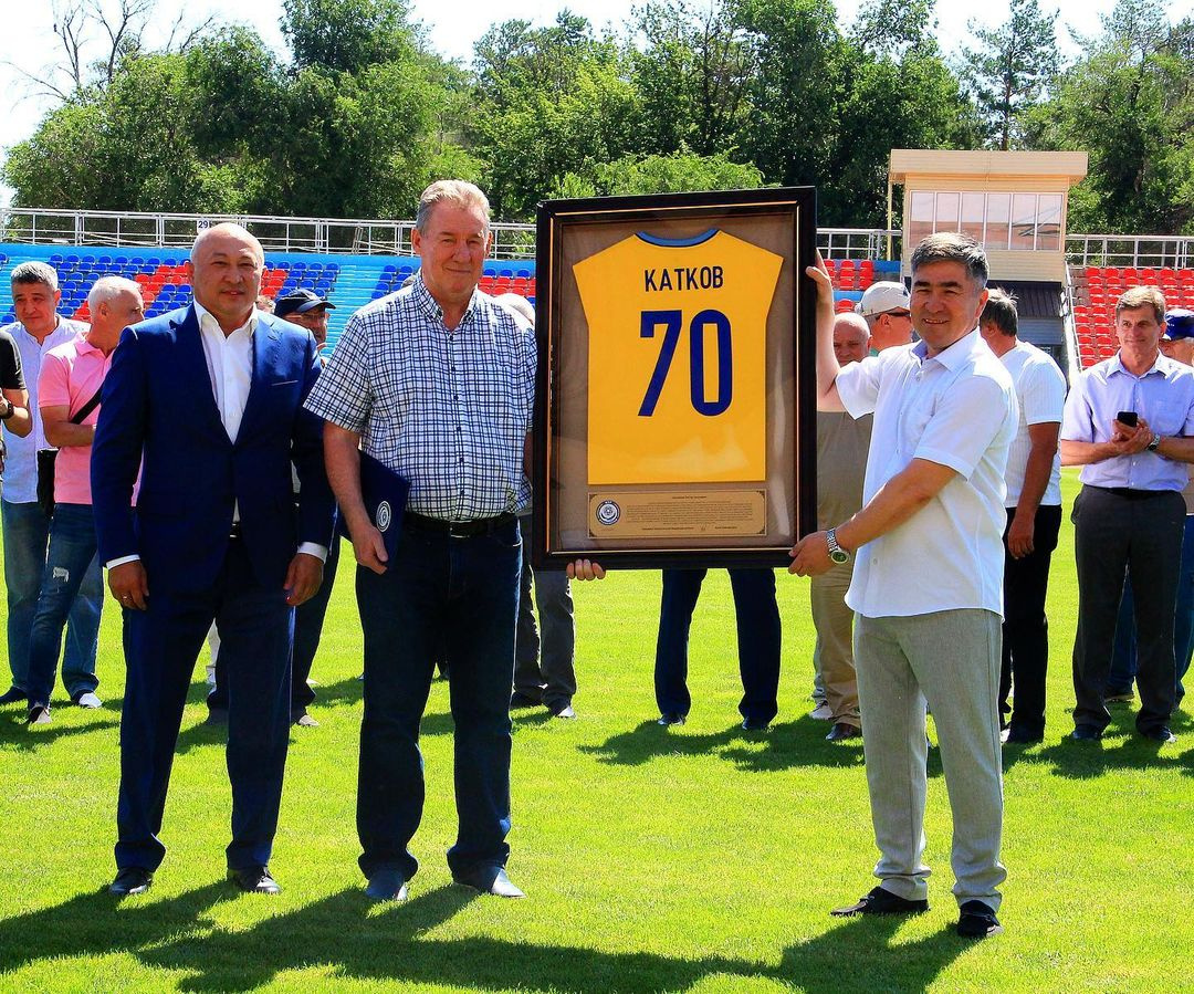 Затем президент федерации Адилет Барменкулов и ветеран футбола Сеильда Байшаков вручили памятный подарок юбиляру – прославленному игроку, воспитаннику жамбылской школы футбола Виктору Каткову, которому исполнилось 70 лет. Также памятными подарками и призами был отмечен ряд ветеранов жамбылского футбола.