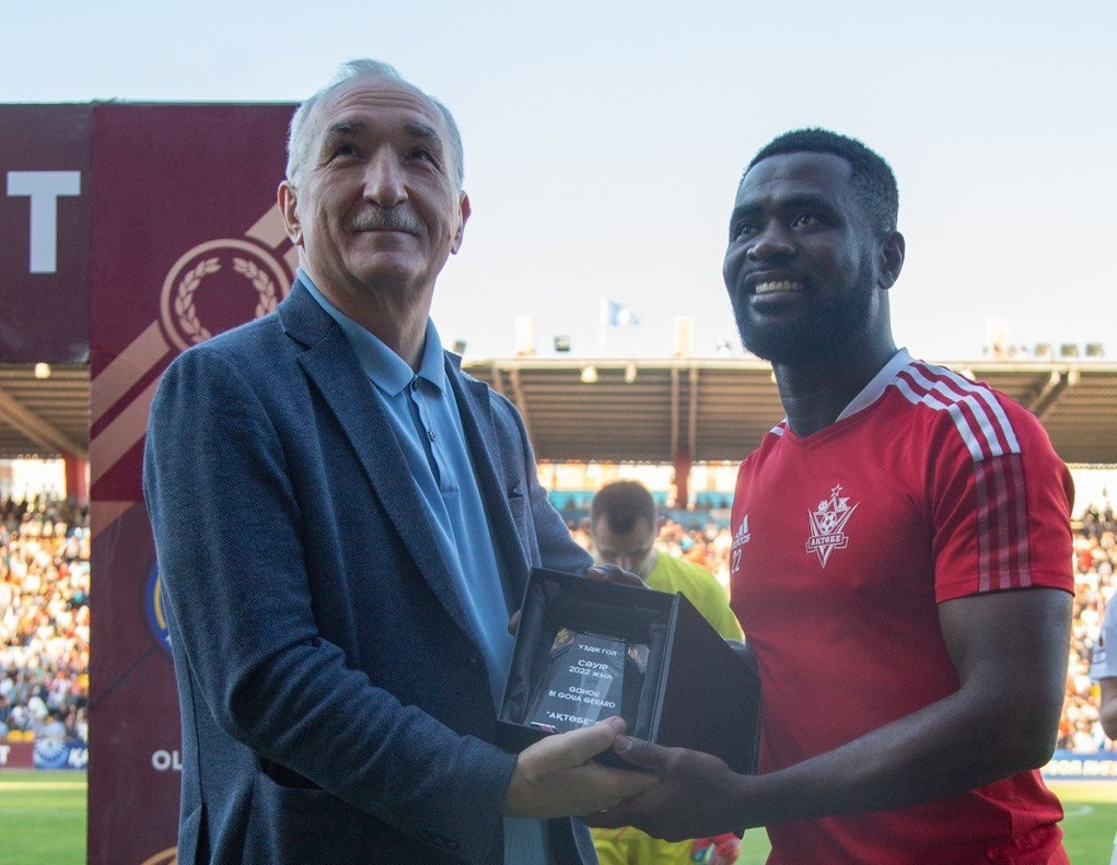 Награду футболисту перед матчем 15-го тура Премьер-лиги между «Актобе» и «Астаной» вручил президент ПФЛК Рохус Шох.