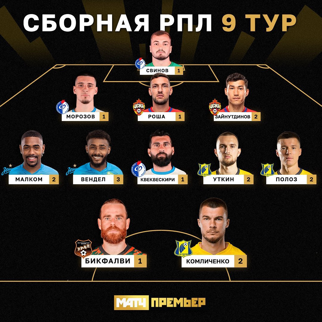 В символическую сборную тура попал игрок Национальной сборной Казахстана и московского ЦСКА Бактиер Зайнутдинов. Полузащитник отыграл весь матч на позиции центрального защитника и помог «армейцам» обыграть «Краснодар».