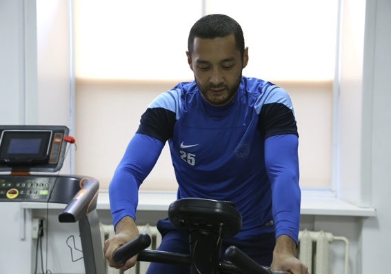 Есимов ежедневно получает все необходимые медицинские процедуры и начал занятия на велотренажере с использованием обеих ног. В перерыве между упражнениями в тренажерном зале 26-летний игрок линии обороны рассказал как продвигается его реабилитация:
