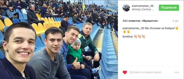 Игроки АФК "Кайрат" и игрок МФК "Жетысу" поддерживали ФК "Кайрат" в столичном дерби