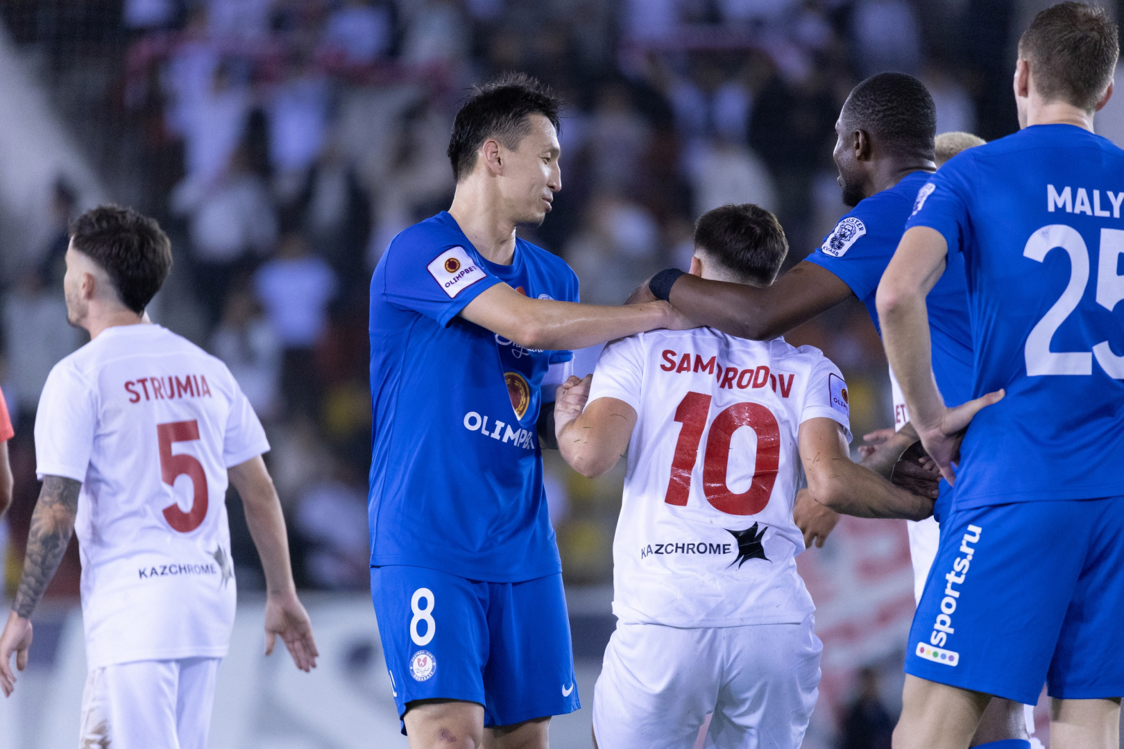 «Актобе» получил штраф в размере 100 МРП (345 тысяч тенге) за получение пяти желтых карточек в матче с «Ордабасы», а также ещё 500 МРП (1 725 000 тенге) за бездействие правоохранительных органов, не предоставления должной безопасности игрокам гостевой команды, использования болельщиками команды хозяев дымовых шашек и бросания посторонних предметов на поле, а также за оскорбление игрока «Ордабасы» Асхата Тагыбергена.