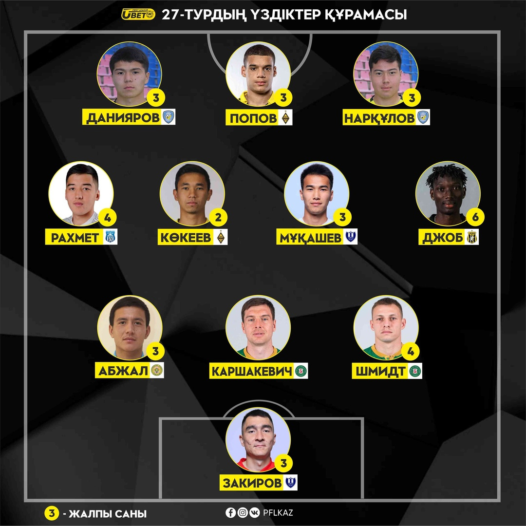 KazFootball.kz представляет Вашему вниманию символическую сборную 27-го тура Первой лиги.