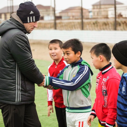 Традиционно после знакомства, участники и воспитанники представительства в Аккыстау перешли к самим урокам футбола. Футболисты показали ряд упражнений на координацию и технику, а юные футболисты повторили все показанное с огромным желанием. Мастер-класс закончился футболом, в котором приняли участие все юные воспитанники.