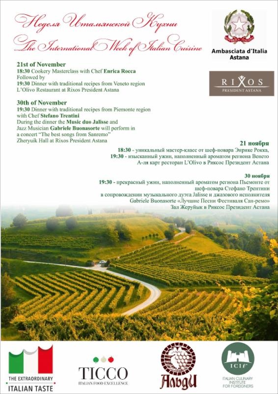 А вы мечтали приблизиться к изысканности итальянской культуры? 21-го ноября совместно с Посольством Италии мы открываем всемирную неделю Итальянской кухни. Вас ждет уникальный мастер-класс от специально приглашенного шеф-повара Энрика Рокка, наполненный настоящим ароматом региона Венето и бесподобный ужин в ресторане L'Olivo. Попробуй Италию на вкус!