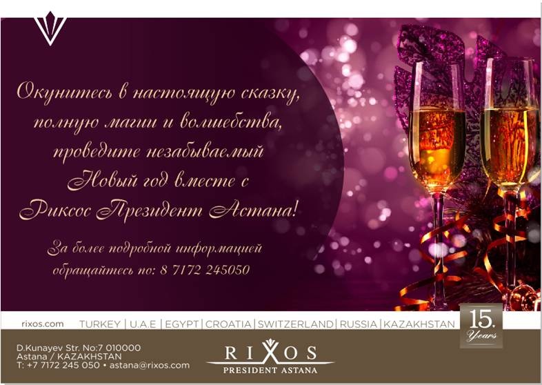 Are you looking for a great opportunity to give your child an unforgettable experience for the whole year? Welcome to the wonderful children's party on December 25th from 10:30 to 12:00! For more information, please call: +7 7172 245050