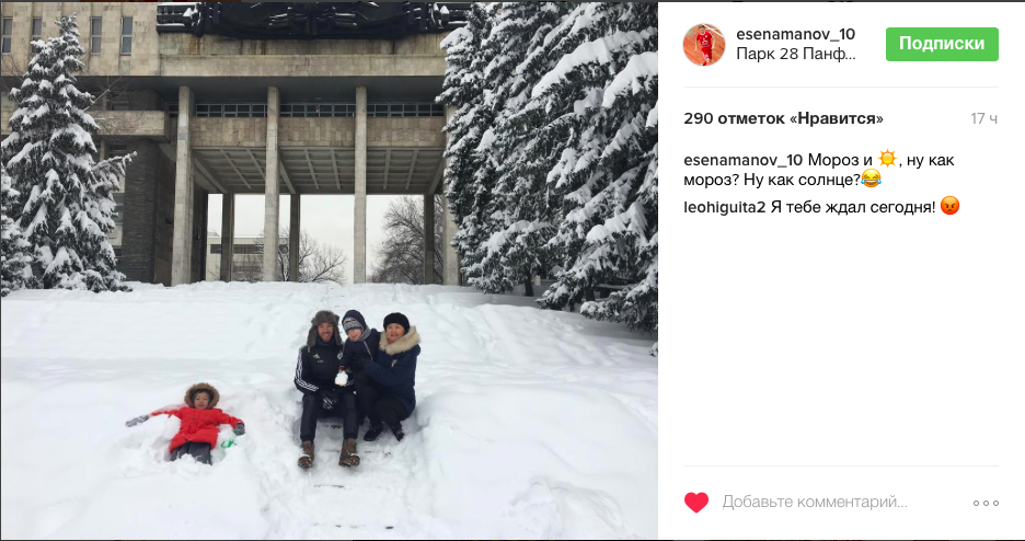 Есенаманов с семьей прогулялся по снежному Алматы