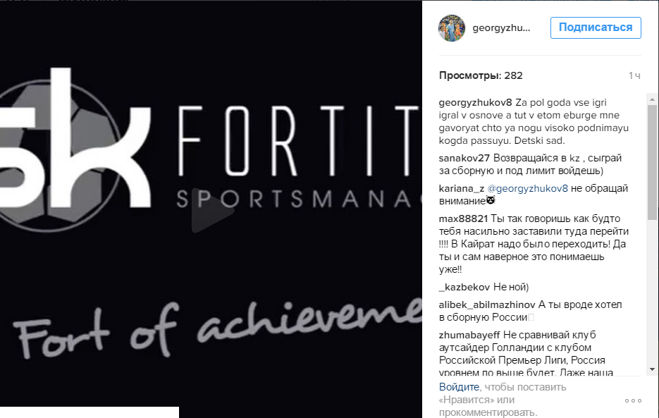 Георгий Жуков, который сейчас играет в российском футбольном клубе «Урал» признался в том, что жалеет о переходе из голландской «Роды» и в российскую футбольную Премьер-лигу. Об этом сообщил сам игрок на своей личной страничке в Instagram: