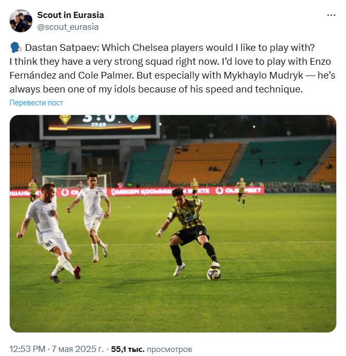 Ранее «Кайрат» достиг соглашения о трансфере Сатпаева в «Челси». Футболист присоединится к клубу из Английской Премьер-Лиги летом 2026 года после достижения совершеннолетия. Сообщалась, что сумма трансфера составляет четыре миллиона фунт стерлингов.