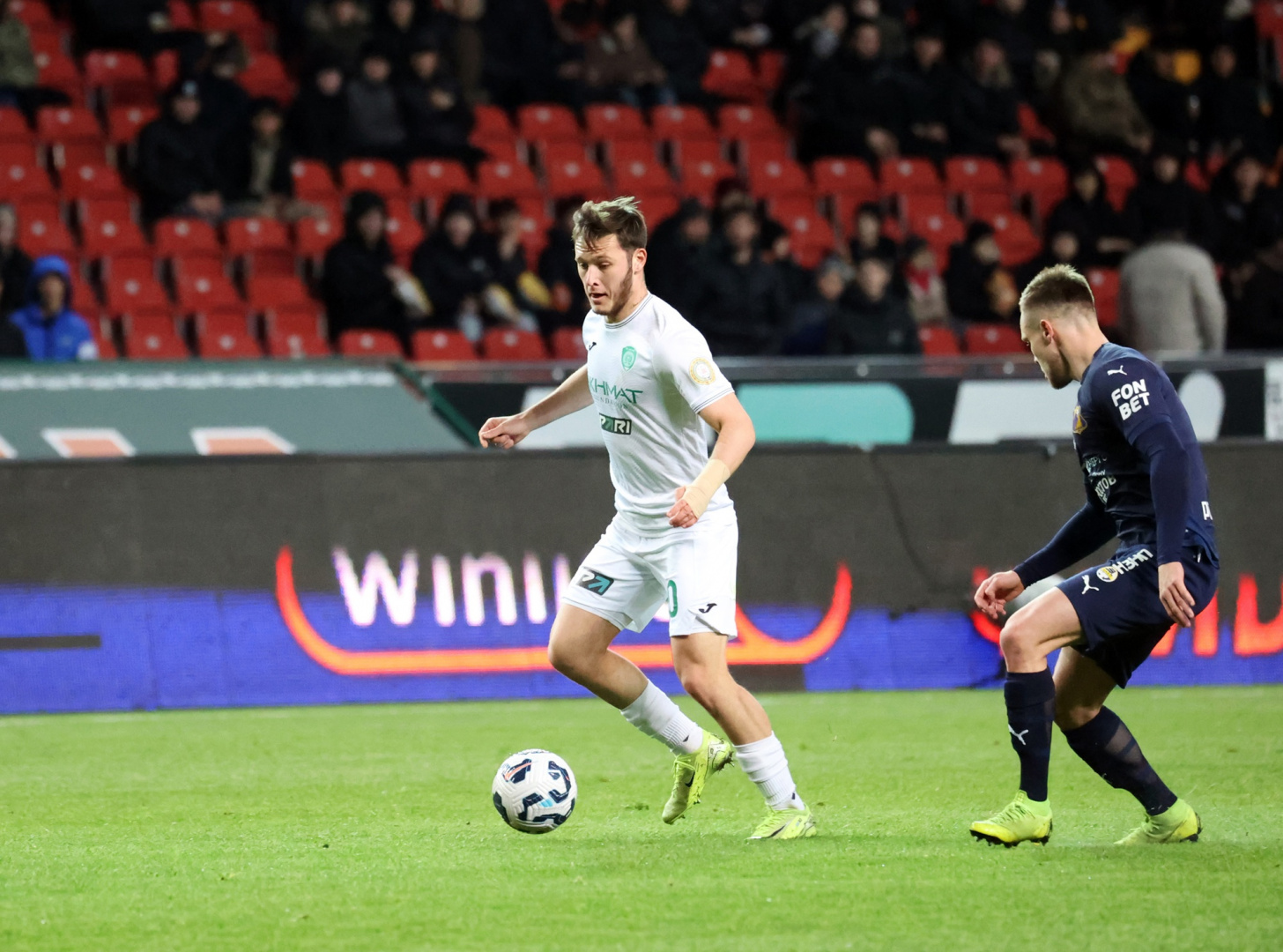 Нападающий сборной Казахстана и «Ахмата» Максим Самородов начал игру со скамейки запасных и вышел на поле в начале второго тайма.