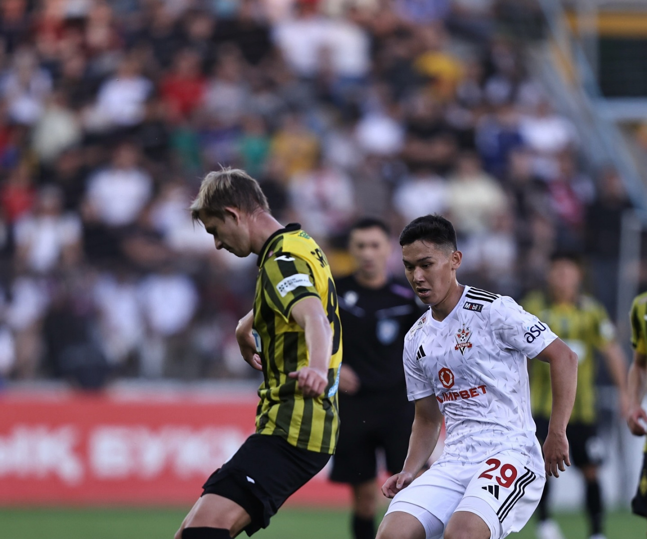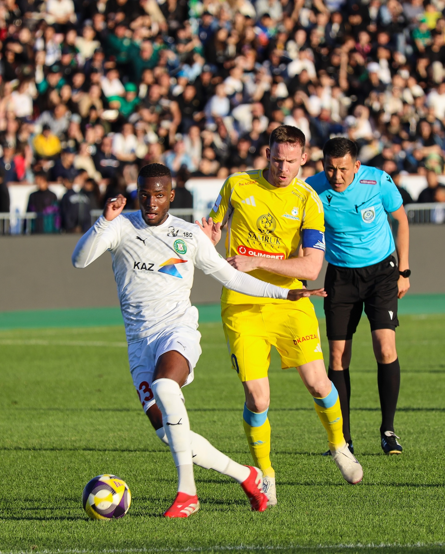 Пелотон же возглавила «Астана». Столичный клуб в отчётный игровой день пожаловал в гости к амбициозному «Елимаю» Семейцы в последнее время не отличаются стабильностью, и очередная осечка могла их отбросить далеко от призовой тройки. Но, несмотря на максимальную заряженность хозяев, «Астана» сумела набрать три очка. Ситуация могла сложиться по-другому, если бы «Елимай» реализовал свой момент на 3-й минуте. Иван Свиридов выскочил на чужие ворота и с двумя защитниками на плечах пробил рядом с левой штангой. В ответной атаке «Астаны» Усман Камара тоже упустил свой шанс, выстрелив мимо цели. На 7-й минуте Карло Бартолец заработал стандарт у чужой штрафной, но Марин Томасов пробил и над «стенкой», и над перекладиной. Игра шла без пауз, и на 10-й минуте Свиридов нанёс удар головой рядом с левой штангой. В середине первого тайма Роман Тугарев с правого фланга прострелил на линию вратарской, откуда подключившийся к атаке Самюэль Одеоибо направил сферу рядом со стойкой. »Астана» превзошла соперника не в количестве опасных моментов, а в реализации. На 32-й минуте гости заработали угловой, после его розыгрыша последовала скидка на Рамазана Каримова, который с разворота пробил над перекладиной – 0:1. Уже на первых секундах второго тайма «Астана» могла упрочить своё преимущество. Назми Грипши на входе в чужую штрафную обыграл оппонента и покатил на Томасова, но Марин в дальний угол не попал. На 49-й минуте Бартолец откликнулся на заброс с углового, однако пробил рядом с правой штангой. Такой активный отрезок «Астаны» всё-таки увенчался голом. Бартолец шикарной передачей вывел на ворота по левому краю Камара, и тот уложил сферу под дальнюю штангу – 0:2. Семейцы не выбрасывали белый флаг, они поддавили, однако оборона «Астаны» ошибок не совершала. А на 87-й минуте гости едва не довели дело до разгрома с углового, однако мяч пролетел рядом со створом. На второй добавленной минуте Томасов выскочил на рандеву с Ковалем, но Максим спас свою команду, отразив мяч ногами. В итоге »Астана» одержала третью победу подряд в чемпионате с разницей в два мяча.
