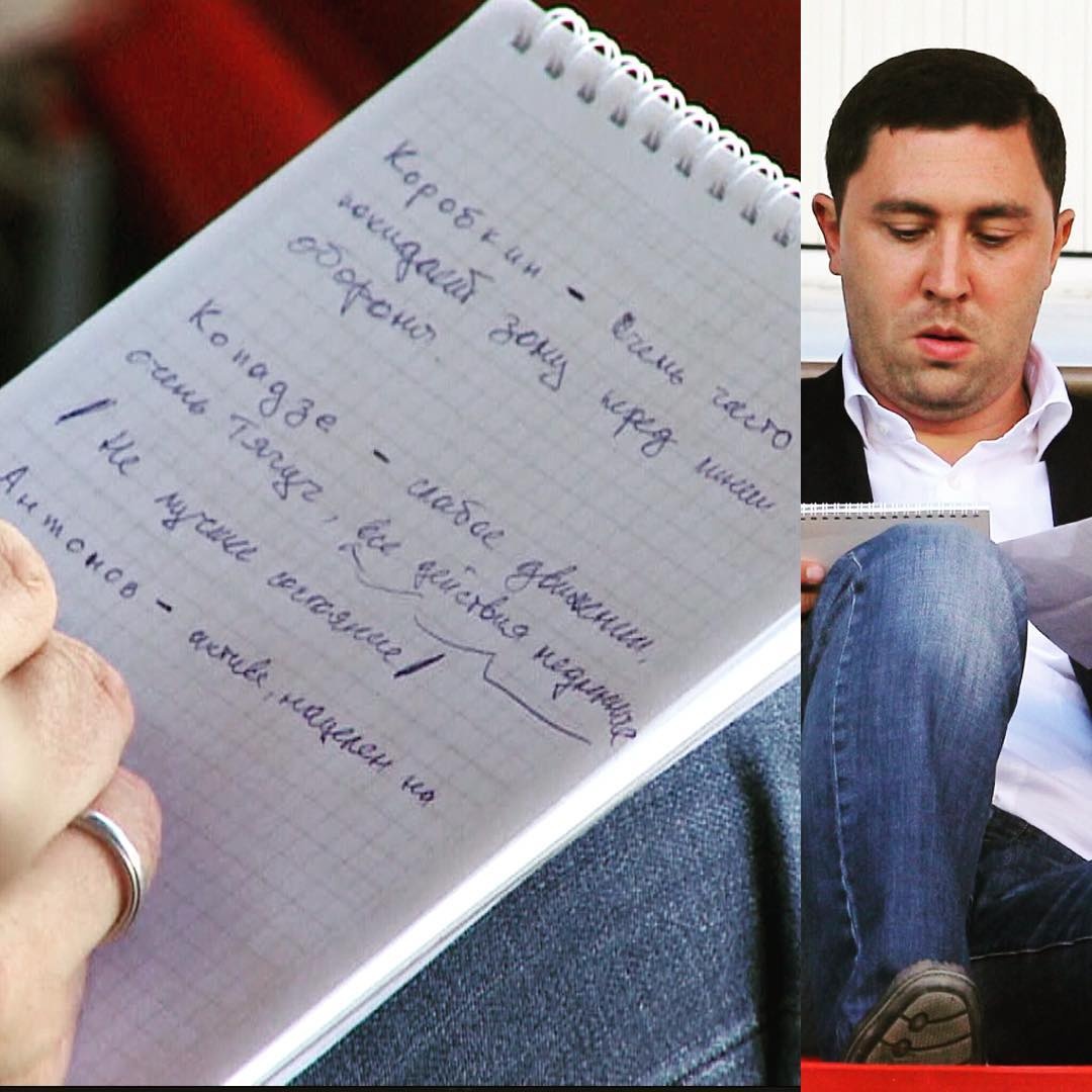 Стали известны небольшие подробности работы бывшего главного тренера «Актобе» Владимира Газзаева. В одном из матчей актюбинцы противостояли «Тоболу», Газзаев-младший вёл собственные заметки касательно игры своих подопечных: